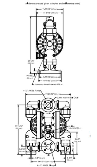 PRO 1-1/2” non-metallic diaphragm pumps are frequently used in transfer, filling, recirculation and supply in Chemical, Industrial and Water/Wastewater treatment markets. Our 1-1/2” models achieve flow rates of up to 100 GPM (378.5 LPM) and also offer a diverse selection of material and porting configurations